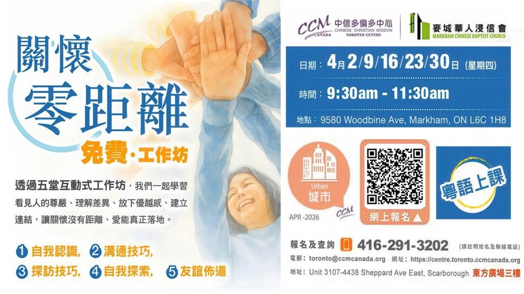 外展事工與中信中心 (多倫多) 合辦「關懷零距離工作坊」