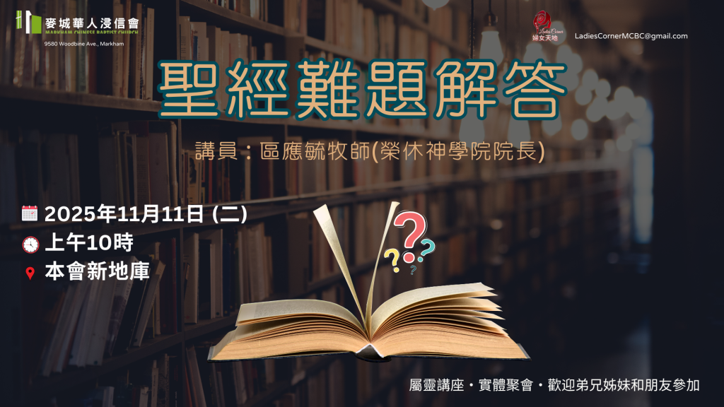 歡迎有興趣的弟兄姊妹和朋友參加