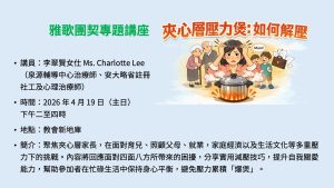 更多...專題講座|婚姻中的暗湧—迷惘中尋找愛