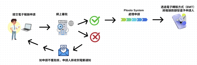 電子報銷 關於 全新電子報銷模式 由 2026 年 1 月 12 日 起,所有報銷申請必須以電子方式提交,報銷款項將通過電子轉賬方式(Email Money Transfer,EMT)發發予收款人。 簡單流程如下圖所示: 關於 需知和程序 提交申請須知和程序申請前請仔細閱讀相關資料 簡介 (1) 按以下連結開始申請 (2) 選擇 “事工 Ministry” (3) 並填寫以下資料 – 提交人資料 – 事工資料 – 費用詳情 (4) 最後上傳一張或之上單據 詳細申請步驟 按此提交報銷 審批人須知和程序審批前,請先仔細閱讀相關詳情 簡介(1) 設定審批人帳戶(如尚未建立)(2) 檢視待審批的提交申請(3) 批准或拒絕申請 審批人重要事項 審核已提交申請 有關電子轉帳有關電子轉帳(EMT),提交人需知重要事項 簡介 (1) 電郵通知 (2) 安全問題 (3) 連接銀行帳戶 確認 按此閱讀 查詢 有關查詢請電郵至ClaimEnquiry@mcbc.com ???? 或在辦公時間內致電 905-887-6222 聯絡教會辦公室。 電郵