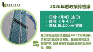 教会消息 國語堂 本周崇拜周刊 点击查阅 麦浸财务报告 2024 年度经审计之财务报告 2024 麦浸年报 特別通告 暂无特别通告 麦浸新附则(英文) 麦浸新附则(中文) 麦浸新宪章(英文) 麦浸新宪章(中文) 新附则简介(英文) 新附则简介(中文) 最新消息 2026年財政預算會友會-登記 📆 2月8日(下主日) 更多... 費用報銷及付款方式新程序的通知 自2026年1月12日起,所有費用報銷申請將轉以電子系統處理,而報銷款項將透過電郵電子轉賬Email Money 更多... CMI 2026柬埔寨醫療短宣 日期:2026年1月9日至19日 麥浸團隊:楊佩禮Grandy弟兄和張英慧Joanna姊妹 更多... 2026柬埔寨短宣 日期:1月21日⾄2月3⽇ 內容:去支持幫助當地的兒童和大學生福音宣教事工,去探訪當地的小學和大學生宿舍,主要活 更多... 兒童聖經夏令營 (VBC 2026) 夏令營將於8月10日至21日舉行,對象為目前就讀幼稚園至第8班的學生。 更多... 青少年退修營(英語) 青少年退修營現正接受報名! 一年一度的青少年退修營將會在2026年1月30日至2月1日在Medeba舉行。本年度的主題是「遵從」,研讀約翰福音15:1-8。 更多... 捐贈股票或證券產品 如捐贈證券 (Securities) 更多... 兒童事工招募導師和義工 兒童事工現正為你提供一個和小孩子分享基督的愛的好機會!我們正招募主日帶領1-3年級及4-6年級的導師和義工, 更多... 請填寫奉獻資料 為了提高發放報稅收據的準確性,請在奉獻信封或電子轉帳(e-transfer)上註明以下資料: 奉獻號碼、您的全名(中文與英文)及電郵地址或手機號碼。 更多... Bible Study Fellowship (BSF) 查經班 從9月份開始,BSF將在本會舉辦查經班,歡迎有興趣的弟兄姊妹一起參加! 主題:被擄與歸回 更多... 額外泊車位 為舒緩主日停車場車位緊張的情況,我們已就每個主日租用了附近小學(Lincoln Alexander 更多... 關於PayPal 奉獻 透過PayPal Giving 更多... « Previous Next »