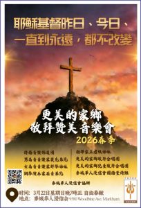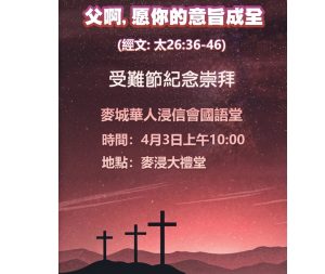 教会消息 國語堂 本周崇拜周刊 点击查阅 麦浸财务报告 2024 年度经审计之财务报告 2024 麦浸年报 特別通告 暂无特别通告 麦浸新附则(英文) 麦浸新附则(中文) 麦浸新宪章(英文) 麦浸新宪章(中文) 新附则简介(英文) 新附则简介(中文) 最新消息 2026年財政預算會友會 📆2月 8日 更多... 2026 賀年茶聚 更多... 兒童聖經夏令營 (VBC 2026) 職員招聘及義工招募 我們現正招聘夏令營統籌員,並招募義工,以籌辦今年兒童聖經夏令營。 更多... 2026年麥浸國語堂夏季退修會 日期:2026年8月1至3日 地點:RESIDENCE 更多... 姐妹园地Sisters Garden 让生命蜕变与逐渐成长,走向成熟的安全园地 更多... 兒童團契試辦計劃 (4-6年級) 為發展合適的兒童團契,兒童事工將於2月13日、3月13日及5月8日三個星期五晚上7:30-9:30試辦兒童契團聚會。 更多... 全新電子報銷模式 由2026年1月12日起,所有報銷申請必須以電子方式提交,報銷款項將通過電郵轉賬 (Email 更多... 兒童聖經夏令營 (VBC 2026) 夏令營將於8月10日至21日舉行,對象為目前就讀幼稚園至第8班的學生。 更多... 捐贈股票或證券產品 如捐贈證券 (Securities) 更多... 兒童事工招募導師和義工 兒童事工現正為你提供一個和小孩子分享基督的愛的好機會!我們正招募主日帶領1-3年級及4-6年級的導師和義工, 更多... 請填寫奉獻資料 為了提高發放報稅收據的準確性,請在奉獻信封或電子轉帳(e-transfer)上註明以下資料: 奉獻號碼、您的全名(中文與英文)及電郵地址或手機號碼。 更多... Bible Study Fellowship (BSF) 查經班 從9月份開始,BSF將在本會舉辦查經班,歡迎有興趣的弟兄姊妹一起參加! 主題:被擄與歸回 更多... « Previous Next »
